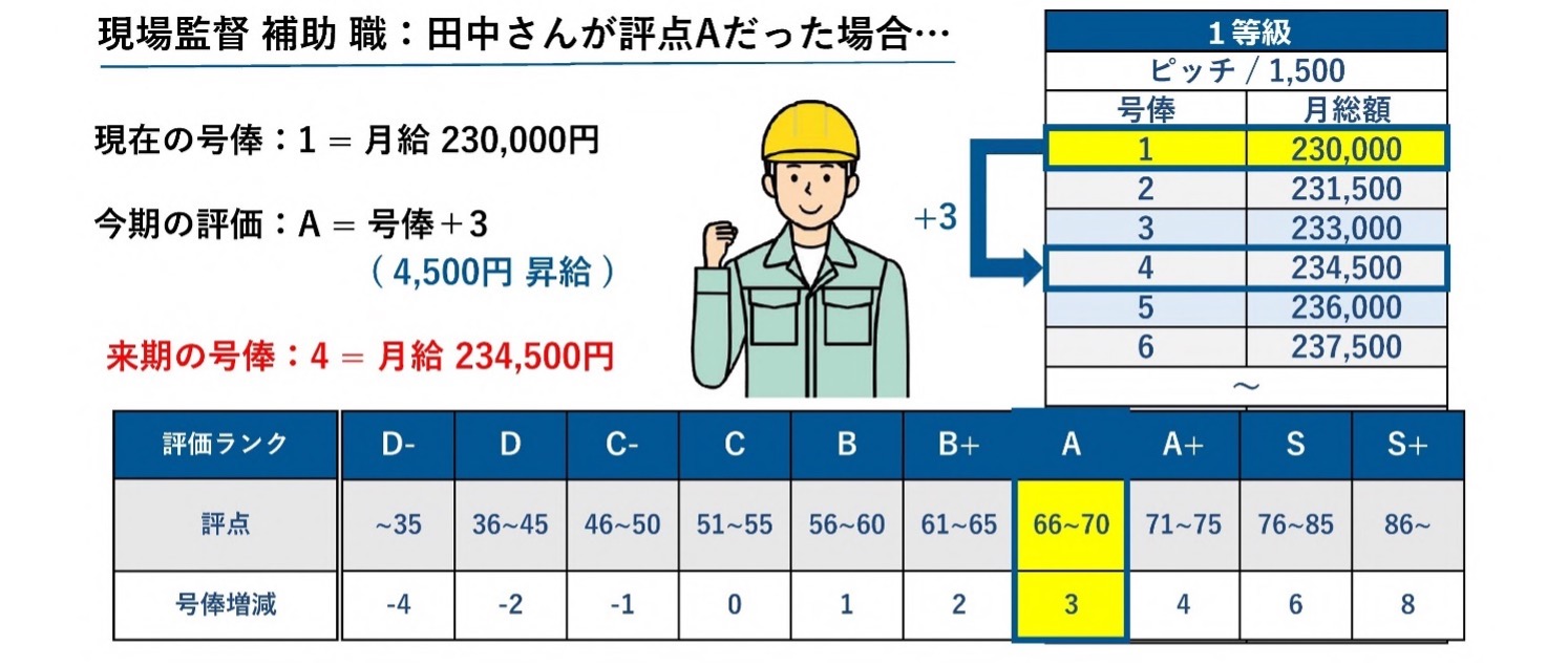 人事評価は、人が人を査定する閻魔帳(えんまちょう)システムとしてではなく、自分の職種でどんなことに取り組んだらいいのか評価項目を明確にしてチャレンジの結果を給与に連動させてゆき、そのプロセスで上司は部下の目標達成に対して的確なアドバイスと支援を続けることで、部下の給与アップを後押しすることで、社員が自律的に成長し会社も同時に発展してゆく仕組みの原動力になっています。
